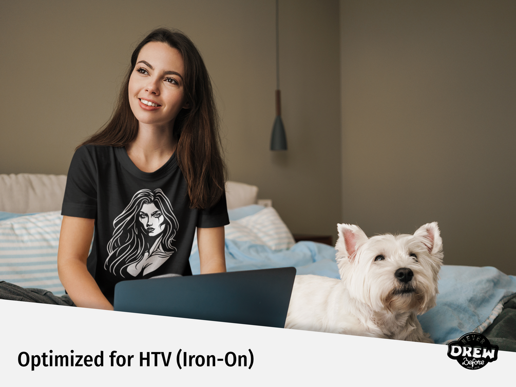 Elevate your creative projects with our striking "Minimalistic Woman Illustration SVG." This design features an attractive young woman, exuding elegance and simplicity. Crafted with precision, it shines brilliantly against dark backgrounds, adding a touch of sophistication to your creations.