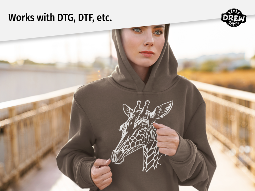 Immerse yourself in the enchanting beauty of the animal kingdom with this captivating illustration of a realistic giraffe head.